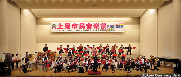 場所:上尾文化センター 大ホール 【上尾市民吹奏楽団&上尾高校合同演奏】 指揮:永野 靖 1.ディズニーランド・セレブレーション(M. ブラウン 編曲) 2.オーメンズ・オブ・ラブ(和泉 宏隆 作曲/真島俊夫 編曲) 【合同演奏 アゲオ・フェスティバル・ウィンド・オーケストラ】 参加団体:上尾市立大谷中学校、上尾市立原市中、上尾市立南中、上尾市立瓦葺中、上尾市立大石南中、県立上尾高校、 芸大上尾チューバ科、上尾高校吹奏楽部OBバンド、UDトラックス吹奏楽部、上尾市民吹奏楽団 指揮:大谷部秀重 1.じんじん-沖縄わらべ歌より(福島弘和 作曲) 2.ミッション・インポッシブル(L.シフリン 作曲/本澤なおゆき 編曲) 指揮:石井 洋 3.ふるさと(高野辰之/岡野貞一/高山直也編曲)