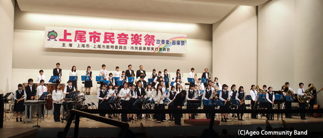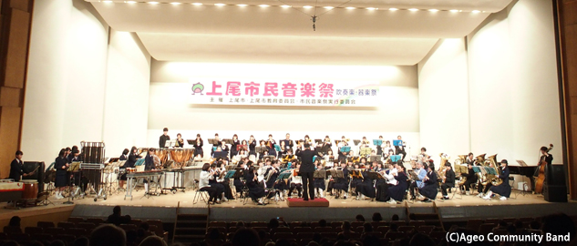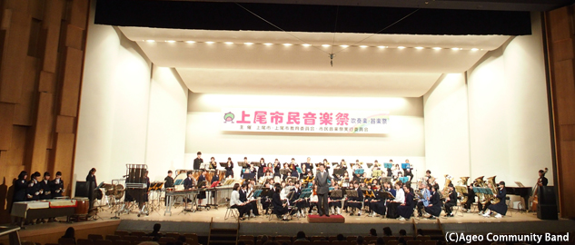 場所:上尾文化センター 大ホール 【上尾市民吹奏楽団&上尾高校合同演奏】 1.Make her mine 〜in swing〜(E.エース/福田洋介 編曲)指揮:神戸留美子 2.「海猿」ハイライト(佐藤直紀、松本孝弘 作曲/渡部 哲哉 編曲)指揮:永野 靖 【合同演奏 アゲオ・フェスティバル・ウィンド・オーケストラ】 参加団体:上尾市立大谷中学校、上尾市立原市中、上尾市立南中、上尾市立瓦葺中、上尾市立大石南中、上尾市立西中 県立上尾高校、芸大上尾チューバ科、上尾高校吹奏楽部OBバンド、UDトラックス吹奏楽部、上尾市民吹奏楽団 指揮:柿沢 康文 1.みどりのマーチ(松尾 善雄 作曲) 2.日本民謡を訪ねて Vol.2(宮崎・秋田・山形・北海道の民謡/松浦 欣也 編曲) 指揮:石井 洋 3.ふるさと(高野辰之/岡野貞一/高山直也編曲)