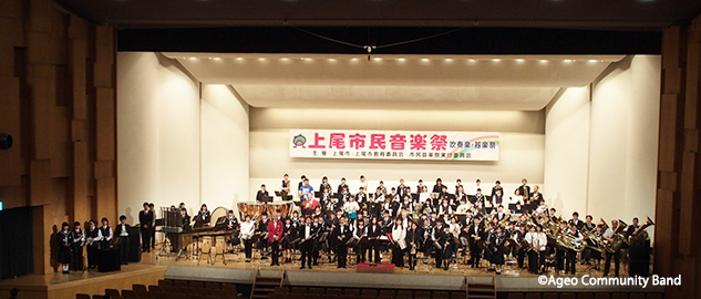 場所:上尾文化センター 大ホール 【上尾市民吹奏楽団】 指揮:永野 靖 1.トランペット吹きの休日(L.アンダーソン 作曲) 2.アラジン・メドレー ~「アラジン」より~(A.メンケン 作曲) 【上尾市民吹奏楽団&上尾高校合同演奏】 指揮:篠原若葉/羽鳥万由子 1.宿命(藤原聡 作曲、 波田野直彦 編曲) 2.オーメンズ・オブ・ラブ(和泉博隆 作曲、 真島俊夫 編曲) 【合同演奏 アゲオ・フェスティバル・ウィンド・オーケストラ】 参加団体:上尾市立原市中、上尾市立東中、上尾市立西中、国際学院中学校高等学校 芸大上尾チューバ科、リーフウインドアンサンブル、UDトラックス吹奏楽部、上尾市民吹奏楽団 指揮:加藤巧樹 1.ファンファーレとトッカータ(E.ハックビー 作曲) 2.テキーラ(C.リオ 作曲、明光院正人 編曲) 指揮:田島詩織 3.ふるさと(作曲 高野辰之、岡野貞一 高山直也編曲)